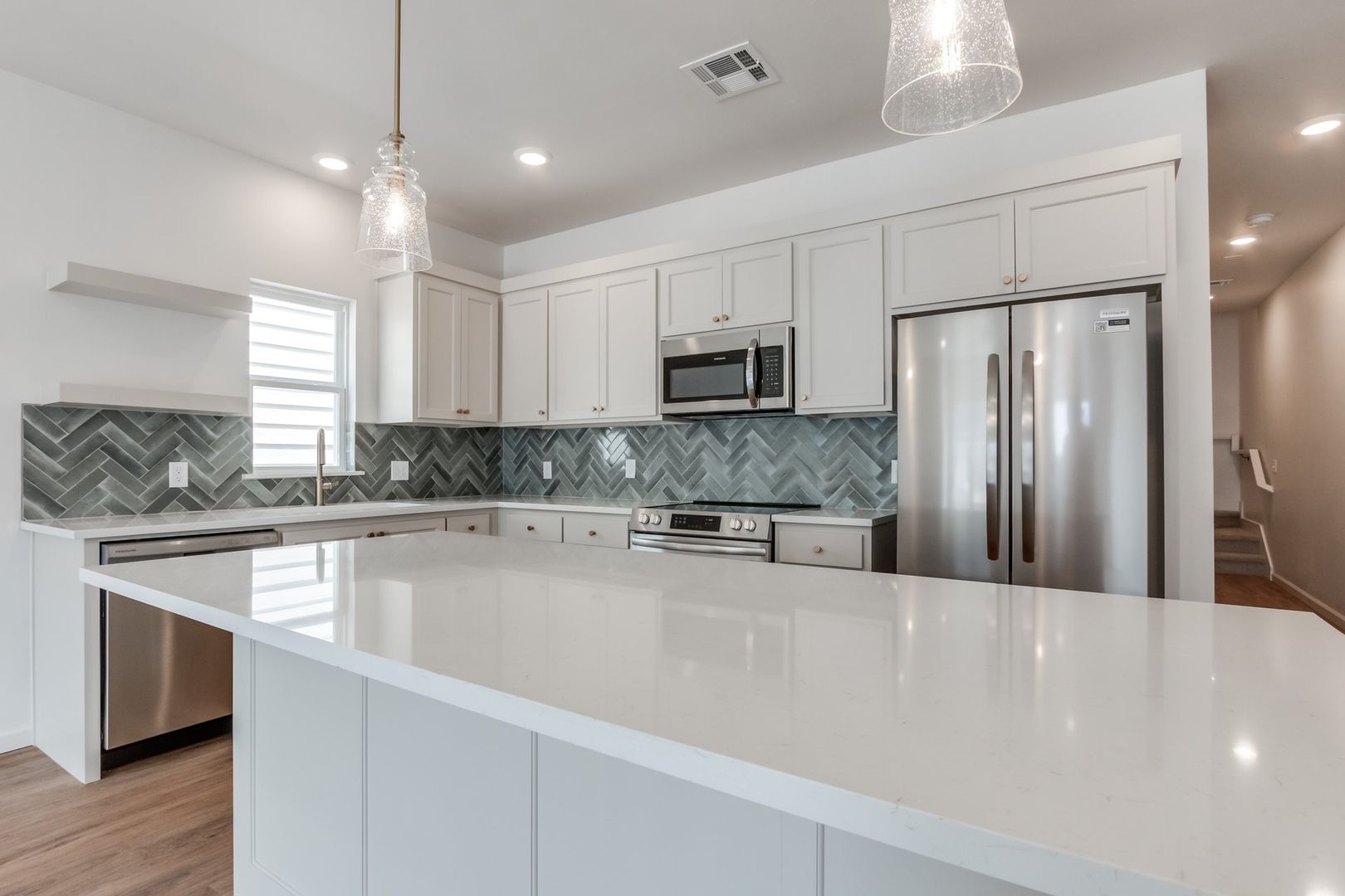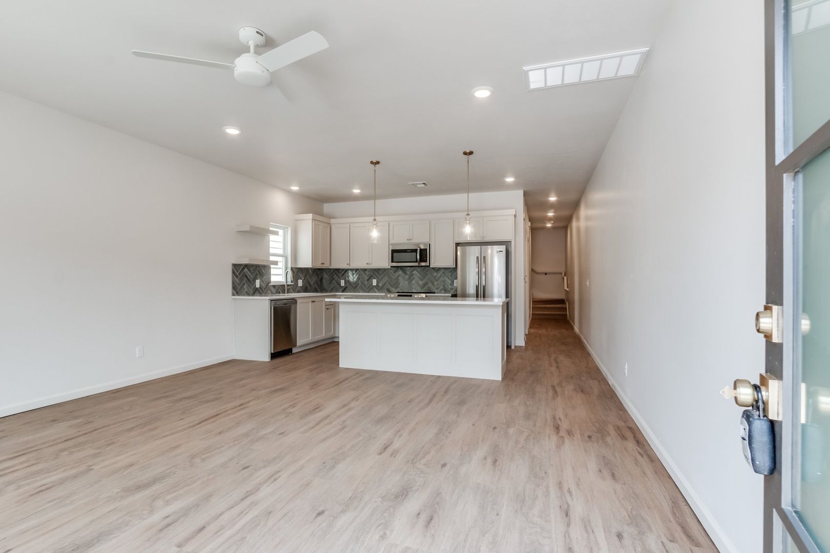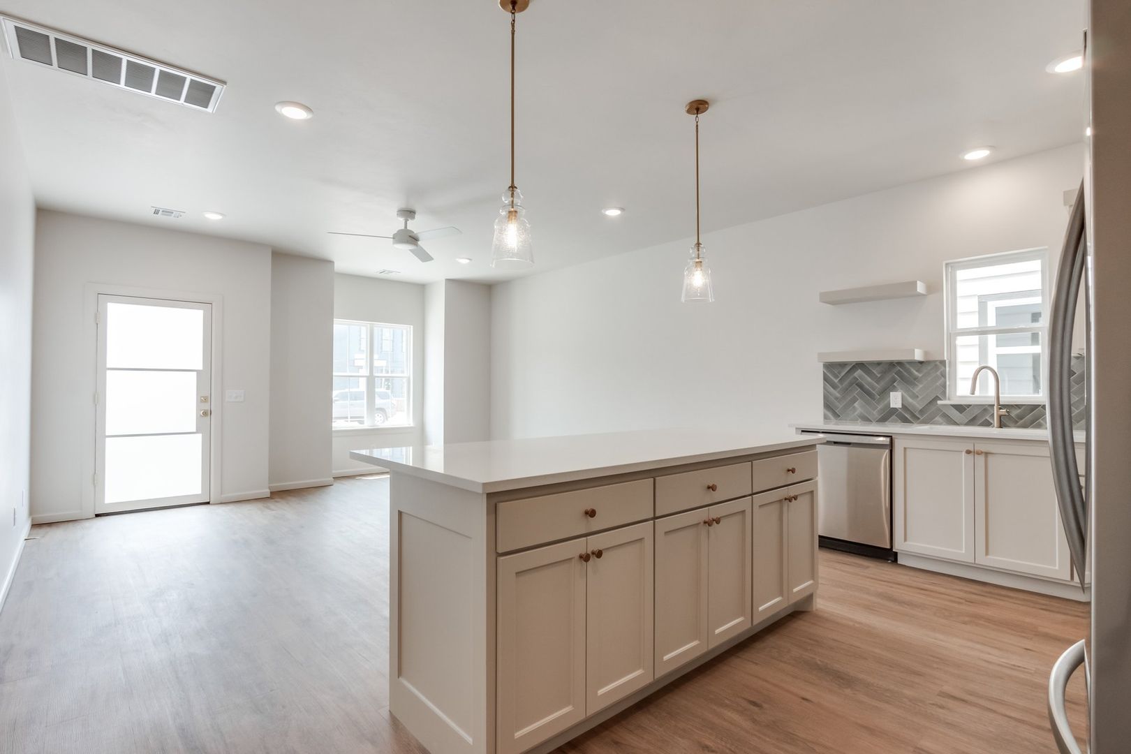 AVAILABLE MAY 20! Check out the newest development in Edmond's Urban Core. New construction three bed/two bath unit with all the modern amenities and near downtown Edmond and the revitalized Chitwood Park neighborhood. This beautiful property is the largest unit in the complex and walking distance to The Ice House, splash pad and Edmond's The Railyard. Spacious living space with modern open concept. Giant windows let in stunning natural light. Large kitchen with ample counter space. Includes a pocket office and Jack and Jill bathroom upstairs. Each unit includes a refrigerator and stackable washer/dryer. Enjoy the Smart doorbell along with a Nest thermostat. Edmond schools. On site parking included. Enjoy urban living nestled next to the booming downtown district. Offered by Harrison Kennedy Homes.