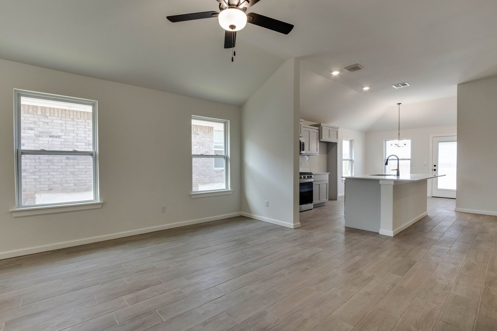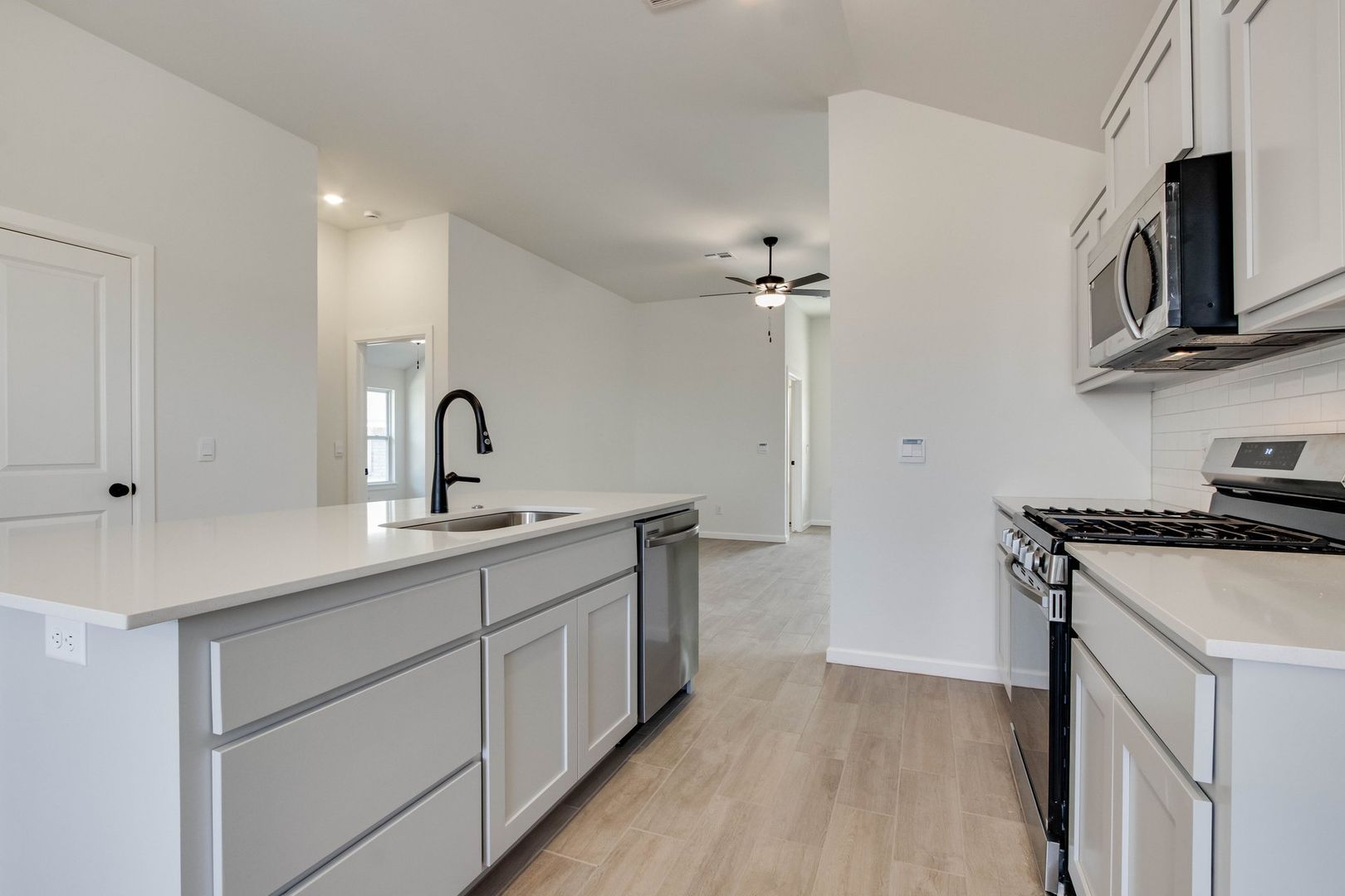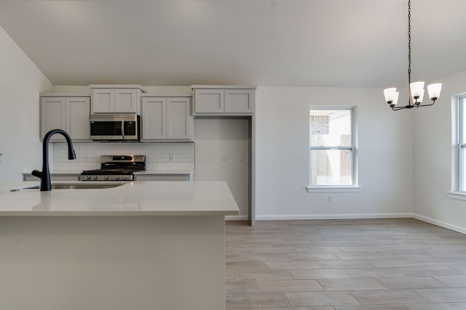 - Quartz countertops + large island